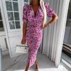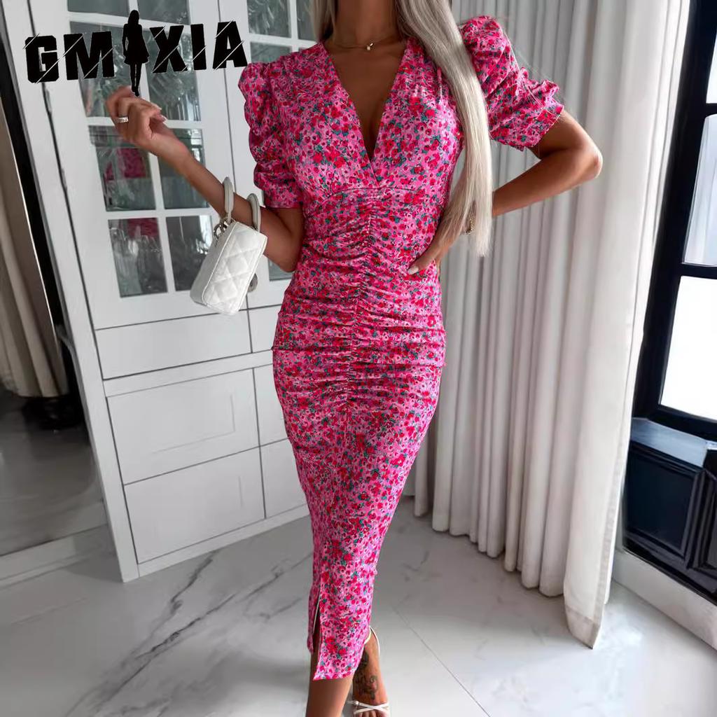 GMXIA Spring/Summer Short Sleeve Floral Dress Deep V-Neck Dresses