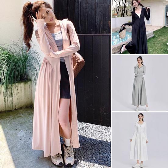 Effortless Style: Featuring a zipper closure for easy wear, this long dress-style jacket effortlessly complements various outfits. Elevate your outdoor look with this fashionable yet functional piece suitable for sports, travel, and summer adventures.