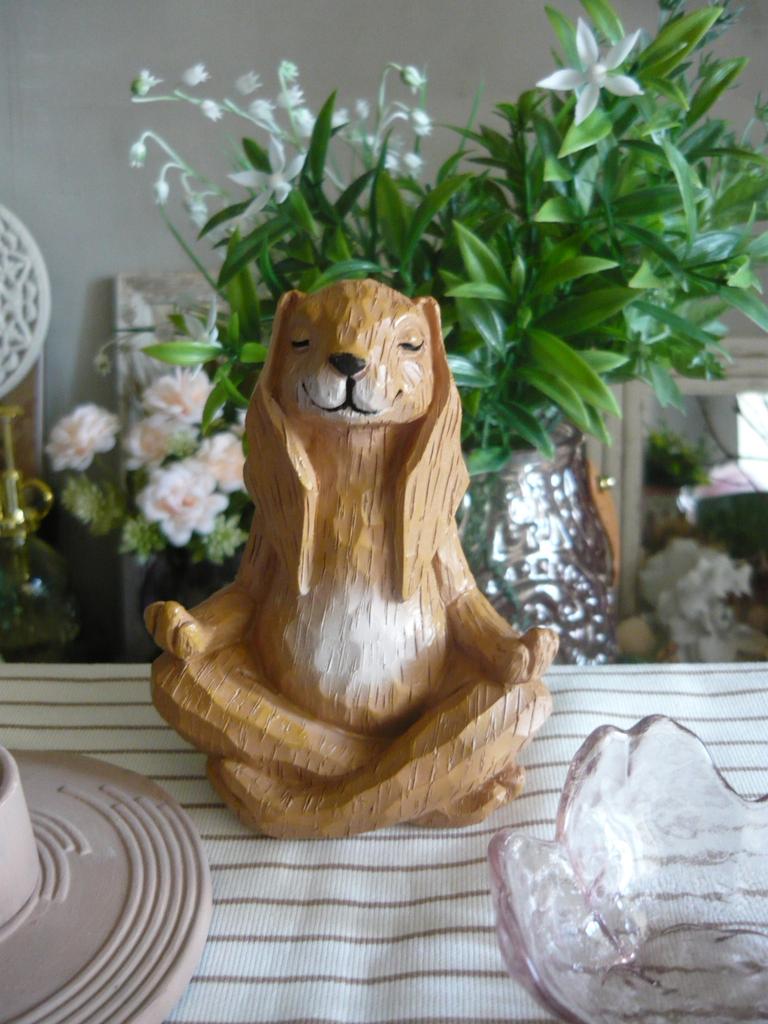 Collectible Figurine - Yoga Bunny Figurine - Handcrafted Lotus Pose - Home & Garden Decor, Handmade Rabbit Yoga Tabletop Shelf Zen Decor Figurines