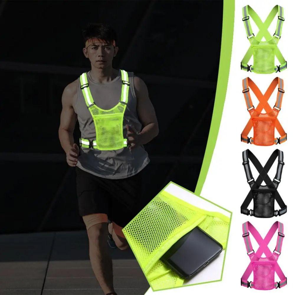 Elastic Cycling Reflective Vest with Phone Pouch Cycling Safe Jacket Running Gear — buy online with free worldwide shipping!