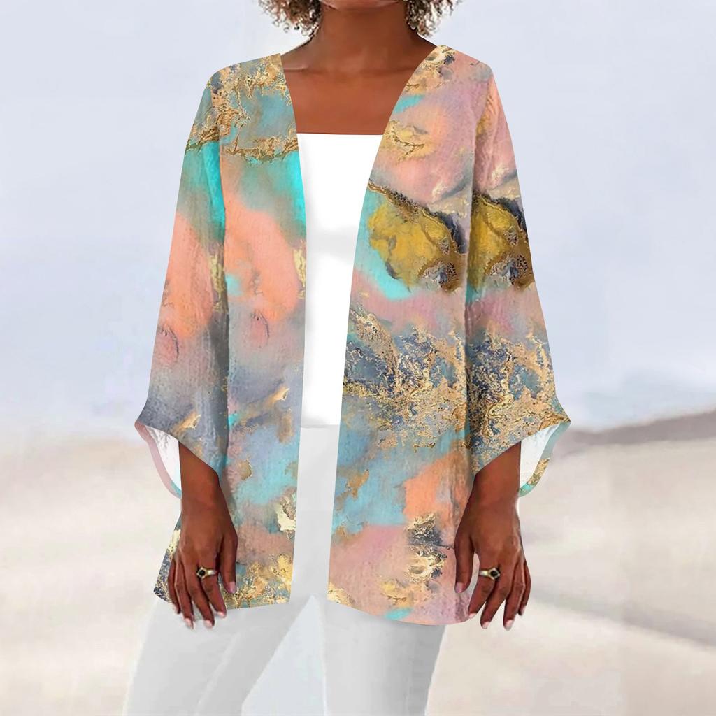 Women's Casual Fashion Retro Printed Lightweight Medium Length Jacket Cardigan