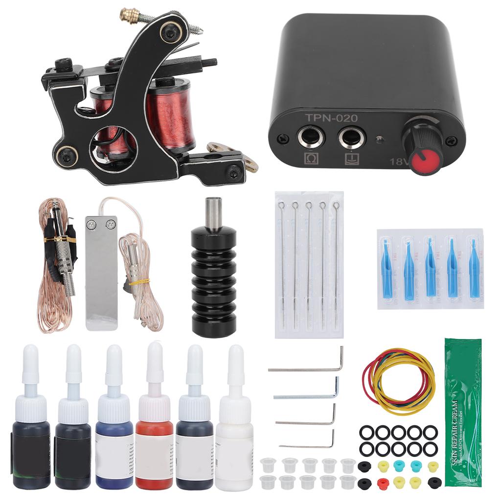 1 x Tattoo Power Supply1 x Power Cord 1 x Transparent Tattoo Clip Cord1 x Tattoo Foot Pedal1 x Tattoo Handle 5 x Tattoo Needle (Random Model)5 x Tattoo Needle Tip (Corresponding To Random Tattoo Needle Model)10 x Grommet (Random Color)10 x Rubber Band (Random Color)10 x Black Tattoo O‑Rings4 x Hex Wrench (1.5mm 0.06, 2mm 0.08in, 2.5mm 0.1in, 3mm 0.12in) 5 x Small Tattoo Ink Cup5 x Medium Tattoo Ink Cup2 x True Black Tattoo Practice Ink1 x White Tattoo Practice Ink1 x Cyan Tattoo Practice Ink1 x Black Tattoo Practice Ink1 x Red Tattoo Practice Ink1 x Green Tattoo Repair Cream