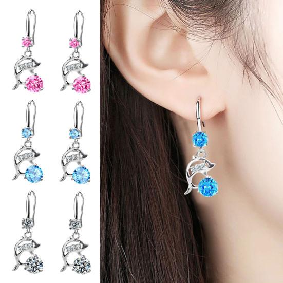 1 Pair Korean Style Hook Earrings Dolphin Design Shiny Rhinestones Drop Earrings Women Mid-length Earrings — buy online with free worldwide shipping!