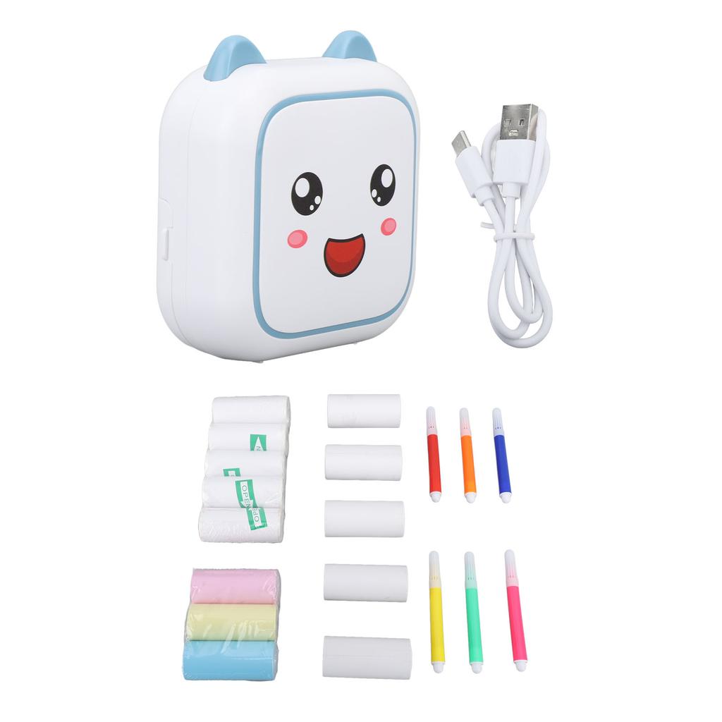 6. PACKAGE INCLUDE: The mini photo printer come with 1 mini thermal printer, 1 charging cable, 6 rolls of regular thermal paper(one roll inside the printer, 5 spare rolls), 3 rolls of colored printer paper, 5 rolls of sticky paper and 6 colored pens, with user manual. This is a great setup for lots of thermal paper, enough for daily use