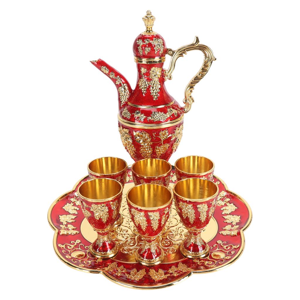 Turkish Coffee Pot Cup Set Vintage Exquisite Elegant Metal Tea Pot Set with 6 Cups for Tea Table — buy online with free worldwide shipping!