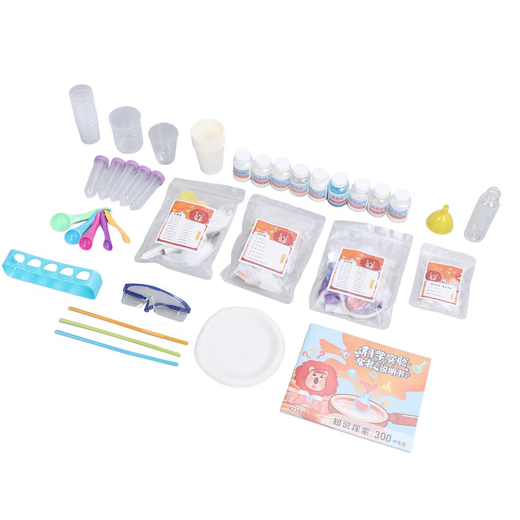 1 x Reagent Pack1 x Material Pack1 x Tool Kit1 x Dripping Ice Experiment Pack9 x Material Bottles (Contains: Sorcery Sand, Citric Acid, White Sugar, Dishwashing Liquid, Calcium Lactate, Sodium Alginate, Absorbent Resin, Baking Soda, Starch)8 x Disposable Water Cups2 x Container3 x Straws1 x Cake Pan1 x Long Bottle1 x Test Tube Rack5 x Test Tube with Scale1 x Funnel1 x Goggles5 x Spoons7 x 100ml Container Bottles