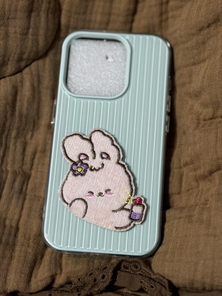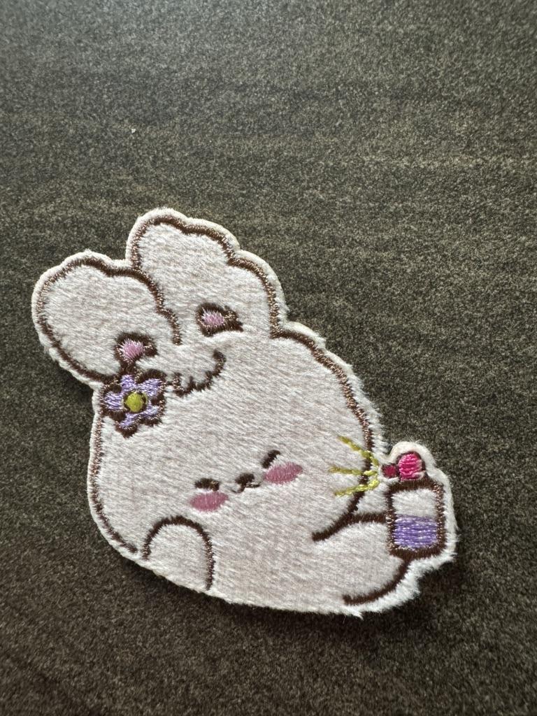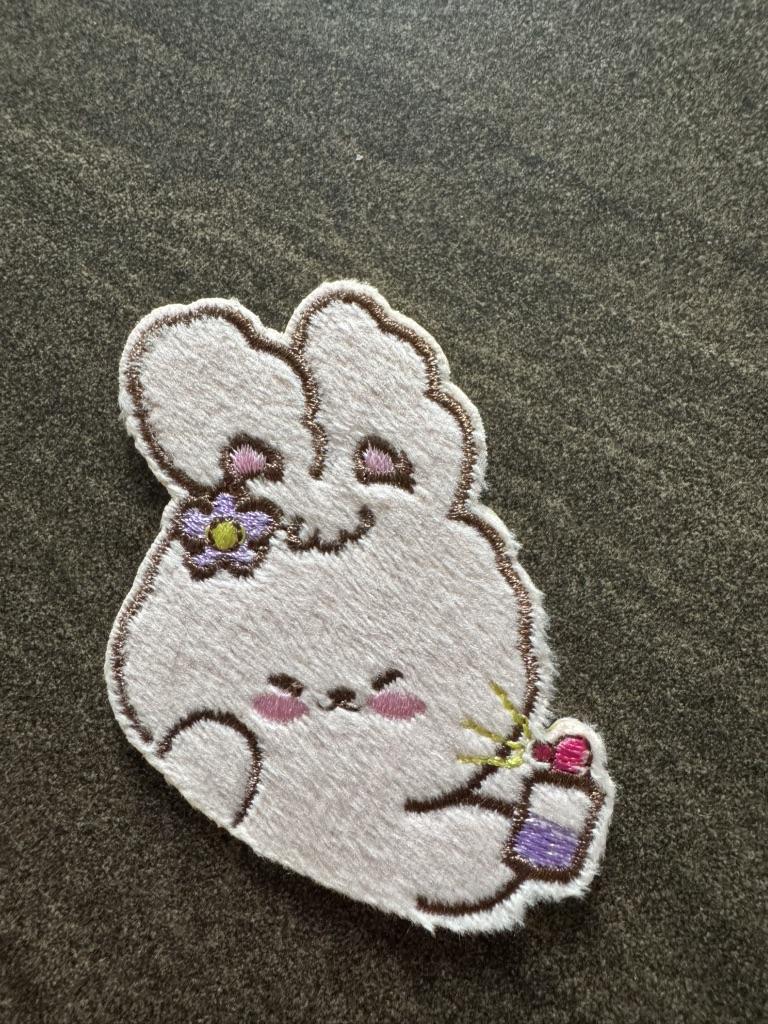 Sticker "bunny" 🐰 Very soft to the touch, neatly sewn and with a beautiful color scheme. Will be a very cute decoration for my case or notebook) The bunny is on an adhesive base, it is very easy to remove the film from the back, it sticks well and fits perfectly.