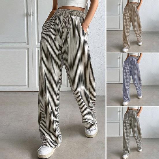 The simple stripe design and waist straps add a touch of elegance to the loose and casual silhouette. Featuring an elastic waist, these pants provide a stylish and relaxed look that exudes charm and sophistication, perfect for both leisure and work settings.