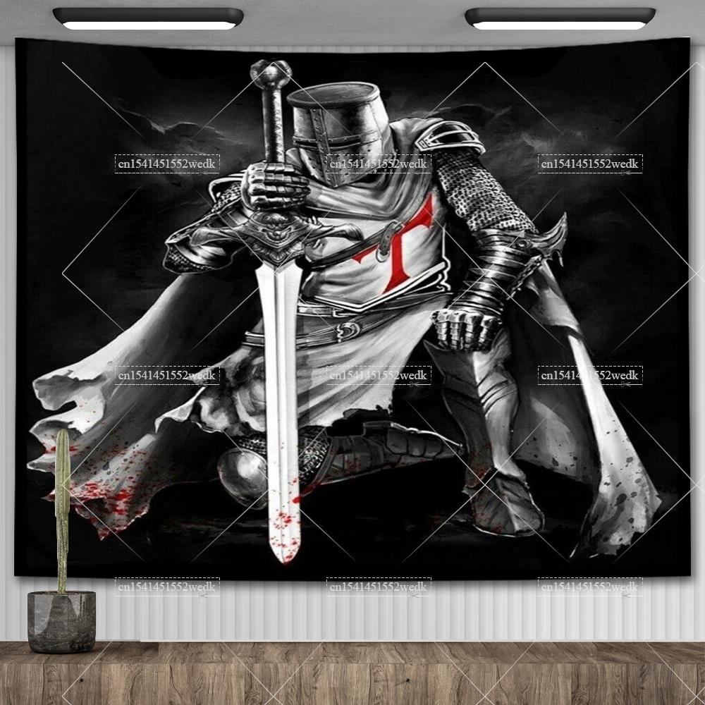 Knight Templar Tapestry Medieval Armor Of God Temple Tapestries Custom Cross Banner Flag Home Decoration Aesthetic Room Decor — buy online with free worldwide shipping!