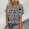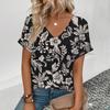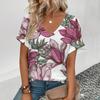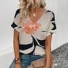 Elegant Women's V-Neck T-Shirt Fashion Floral Pattern Print T-Shirt Popular Women's Short Sleeve T-Shirt Summer Leisure T-Shirt