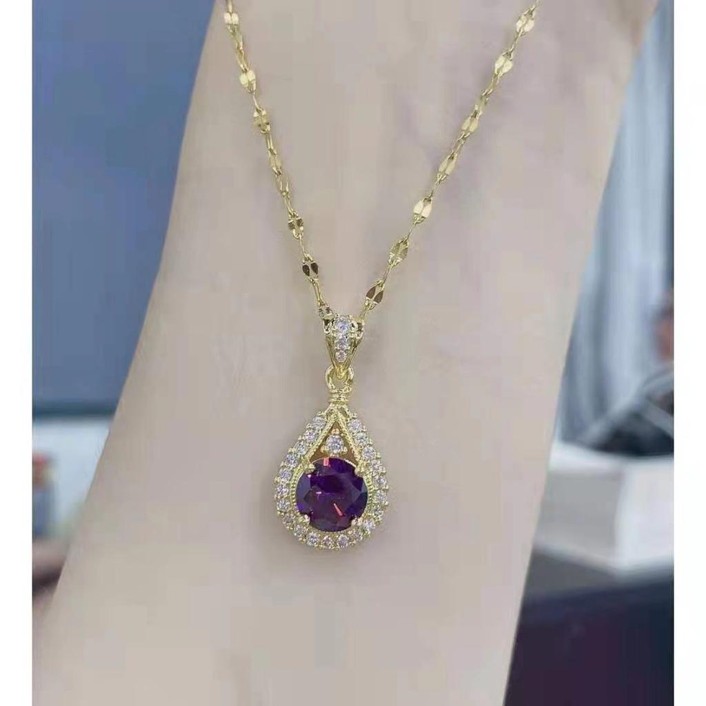 Purple Water Drop Necklace for Women Ins Versatile Clavicle Chain New Fashion — buy online with free worldwide shipping!