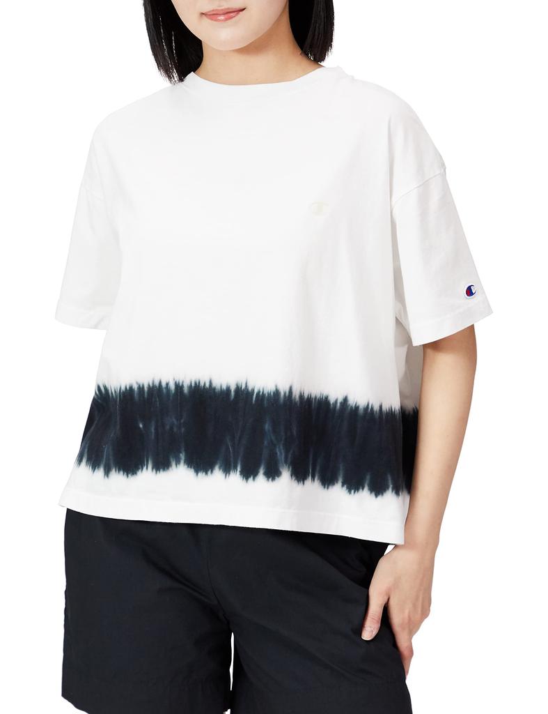 Short One Point Loose Short Sleeve L [Champion] T-Shirt, Sleeve, Logo, Tie-Dye Dyed, Fit, T-Shirt, Women's Casual, CW-V314, White,