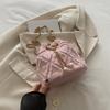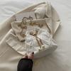 Niche Design Denim Rhombus Bucket Bag Crossbody Trend Drawstring Fringed Pearl Chain Crossbody Bag
