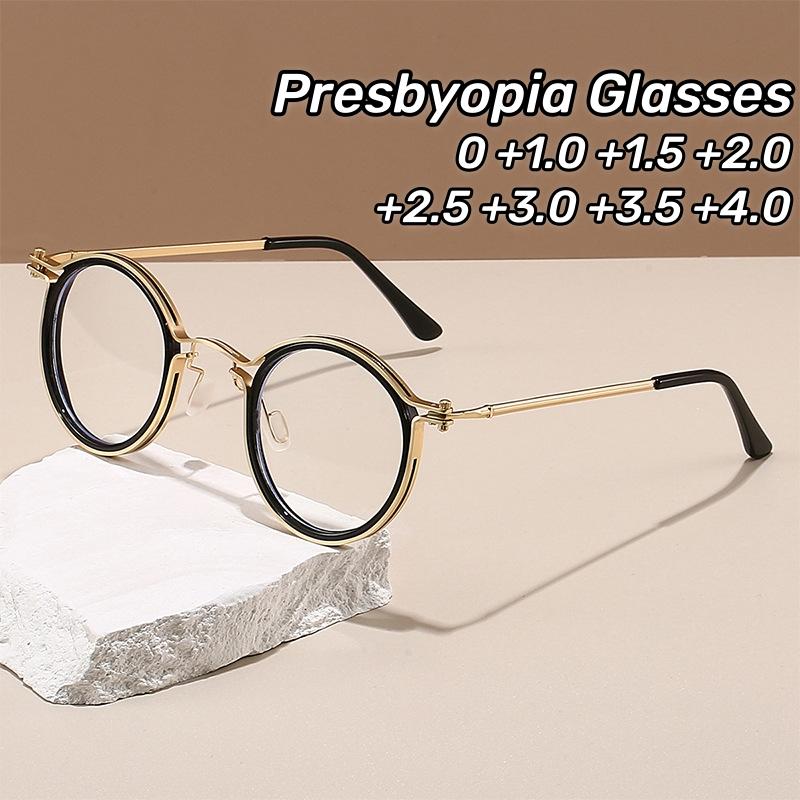 New Retro Round Frame Glasses Classic Men's Anti Blue Light Eyewear Transparent Lens Presbyopia Glasses Diopter 0 To +4.0 — buy online with free worldwide shipping!
