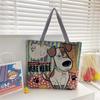 Harajuku Style Cartoon Canvas Bag, Literary Large-Capacity Shoulder Bag, Linen Trendy Cool Ethnic Style Women'S Bag