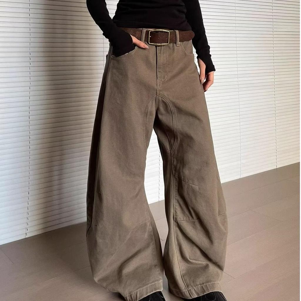 Women American Retro Knife Edge Denim Pants Y2K Spring Autumn Jeans Loose Casual Wide-leg Trousers — buy online with free worldwide shipping!