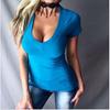 Spring Summer Autumn Solid Color Short Sleeved V-Neck Simple T-Shirt Slim Fit Sexy Temperament Fashionable Top Women'S Clothing