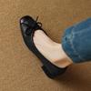 Krazing Pot Natural Leather Spring Summer Size 41 Thick Low Heels Women Square Toe Hollow Decoration Breathable Slip On Pumps