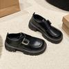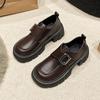 Loafers Women's Spring and Autumn New Platform Heightening Retro Velcro Small Leather Shoes Thick Heel British Commuter Shoes