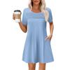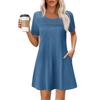 Women's Summer Casual Round Neck Pleated With Pockets Solid Color Short Sleeve Dresses — buy online with free worldwide shipping!