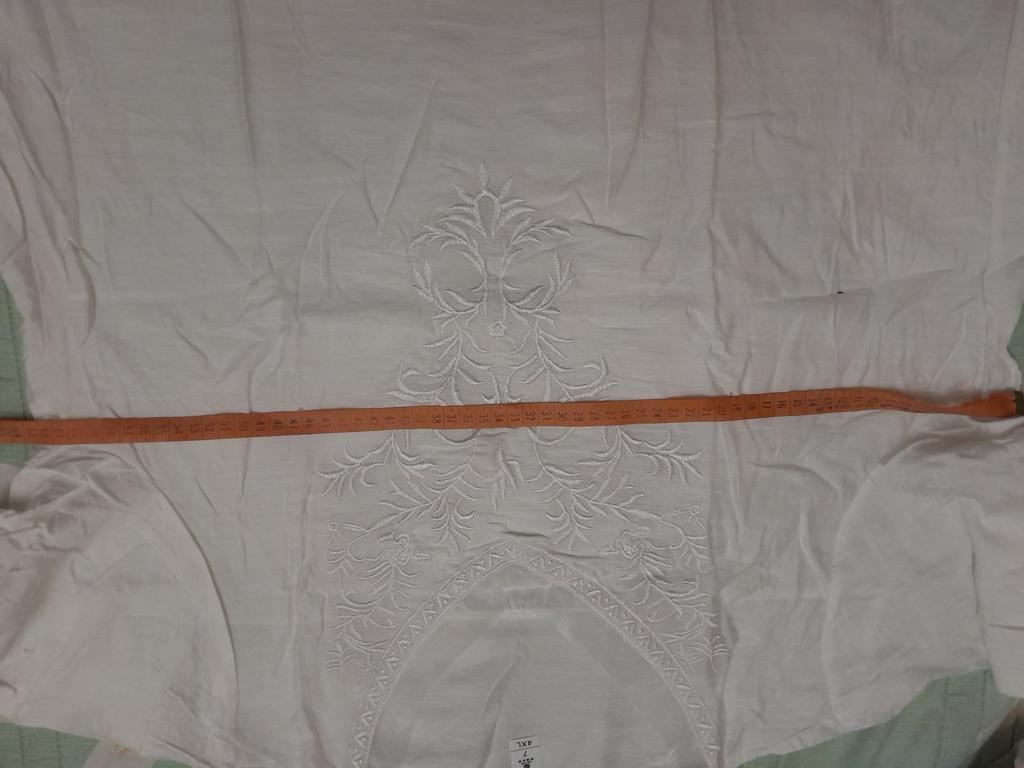 Blouse made of a cotton and linen blend, soft, beautiful, the embroidery is excellent, for me the sleeves are short, for size 54-56, I recommend it, the packaging is excellent.
