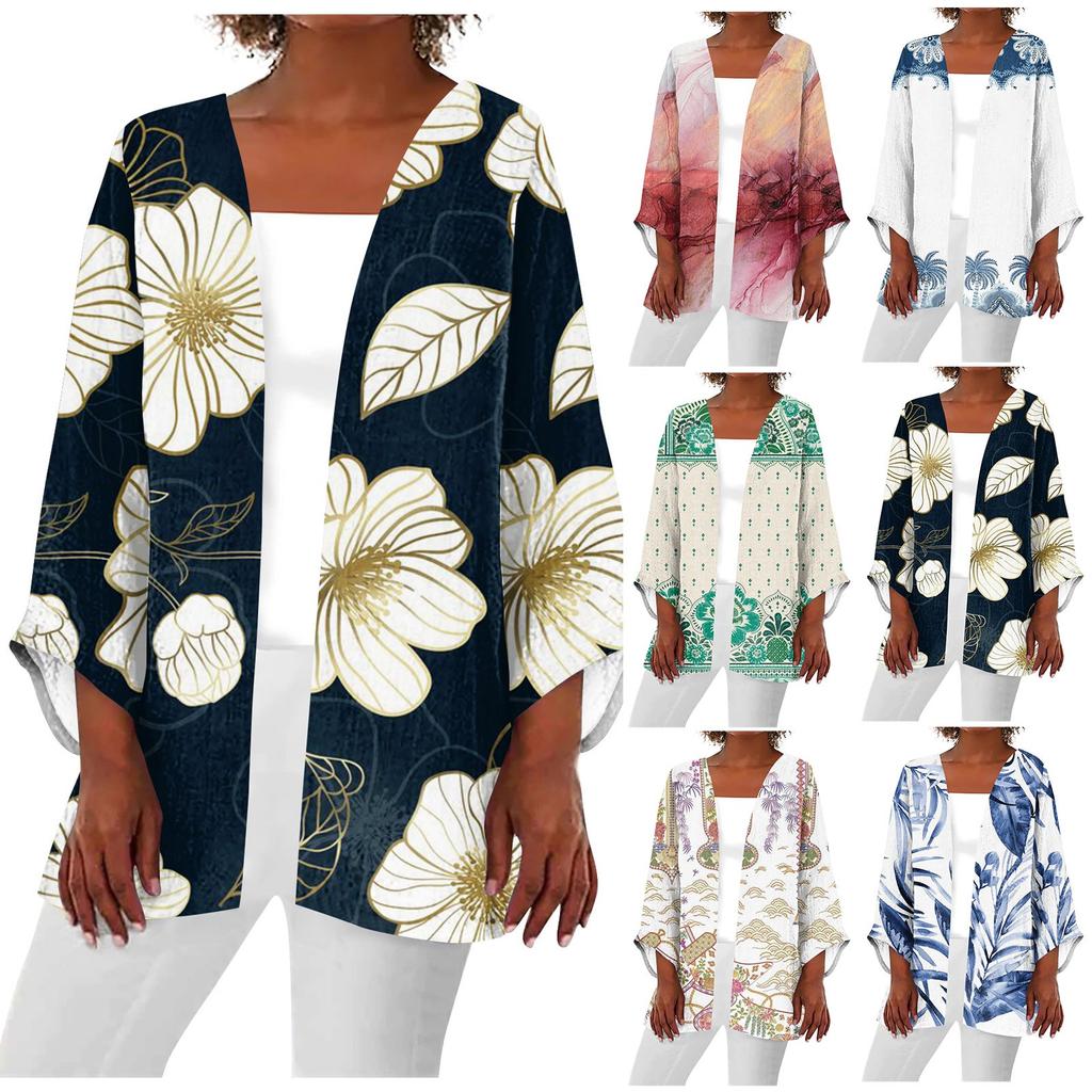 Women's Casual Fashion Printed Lightweight Medium Length Jacket Cardigan