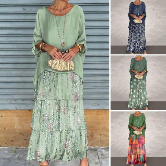 Features: Women's dress has round neck dress, dolman sleeve, multi-layer hem, chiffon mesh detail, loose fit, elegant style and fake two-piece designs.