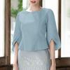 ZANZEA Women Casual Round Neck 3/4 Sleeve Summer Loose Blouse