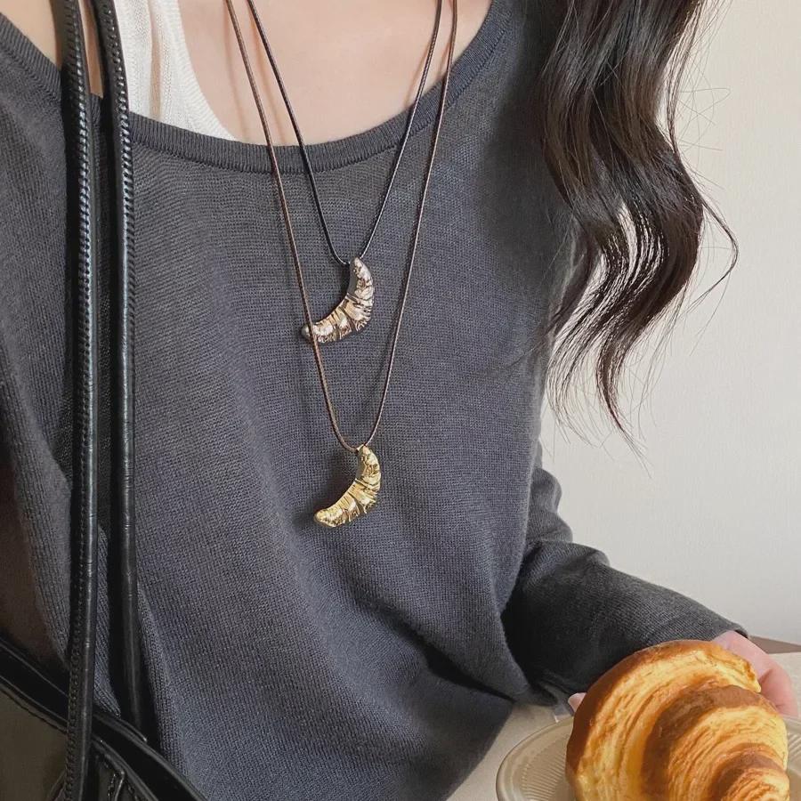 2024 Women's Black Leather Rope Necklace: Korean Croissant Clavicle Chain for Sweaters, Versatile and Elegant. — buy products online with free worldwide shipping!