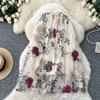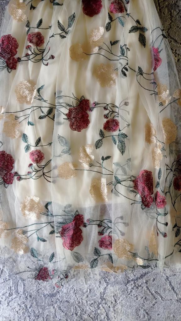 Summer Women Elegant Mesh Embroidery Flower Long Midi Tulle Skirt