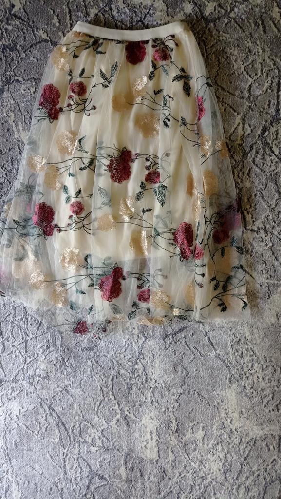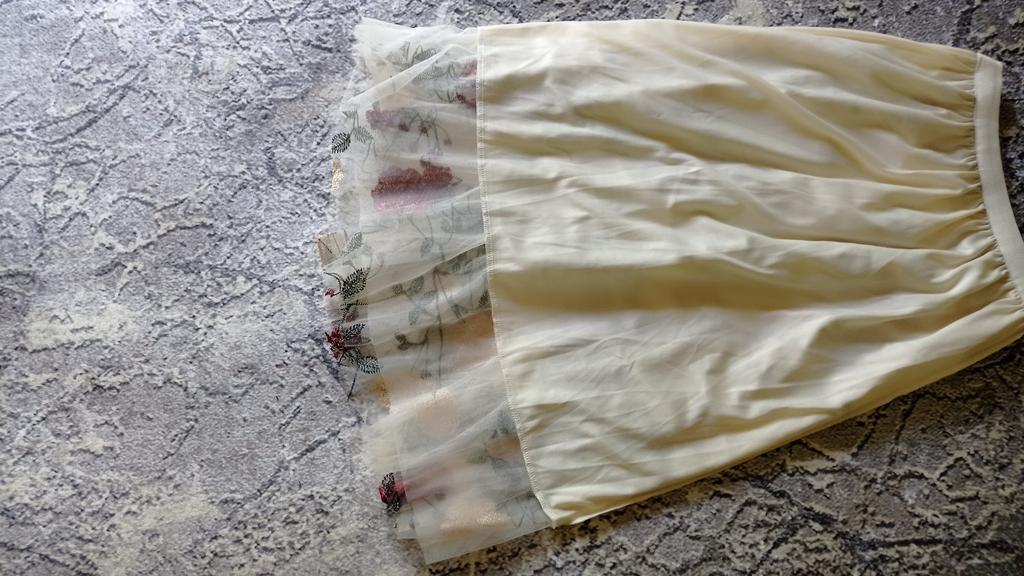 Amazing versatile skirt. Three-layer top layer - tulle, the next layer is also tulle, and the third: lining made of jersey. Does not show through. The wide elastic band stretches very well.. One size fits all, fits sizes: 42 to 50 p. Accurate measurements: FROM 68-110 cm Hips - 92-120 cm skirt length - 78 cm I highly recommend it.👍
