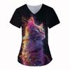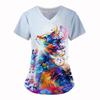 Medical Uniform for Women Cute Cat 3D Print V-Neck Clinical Uniform Short Sleeve Patch Pocket Tops Surgical Women's Uniforms