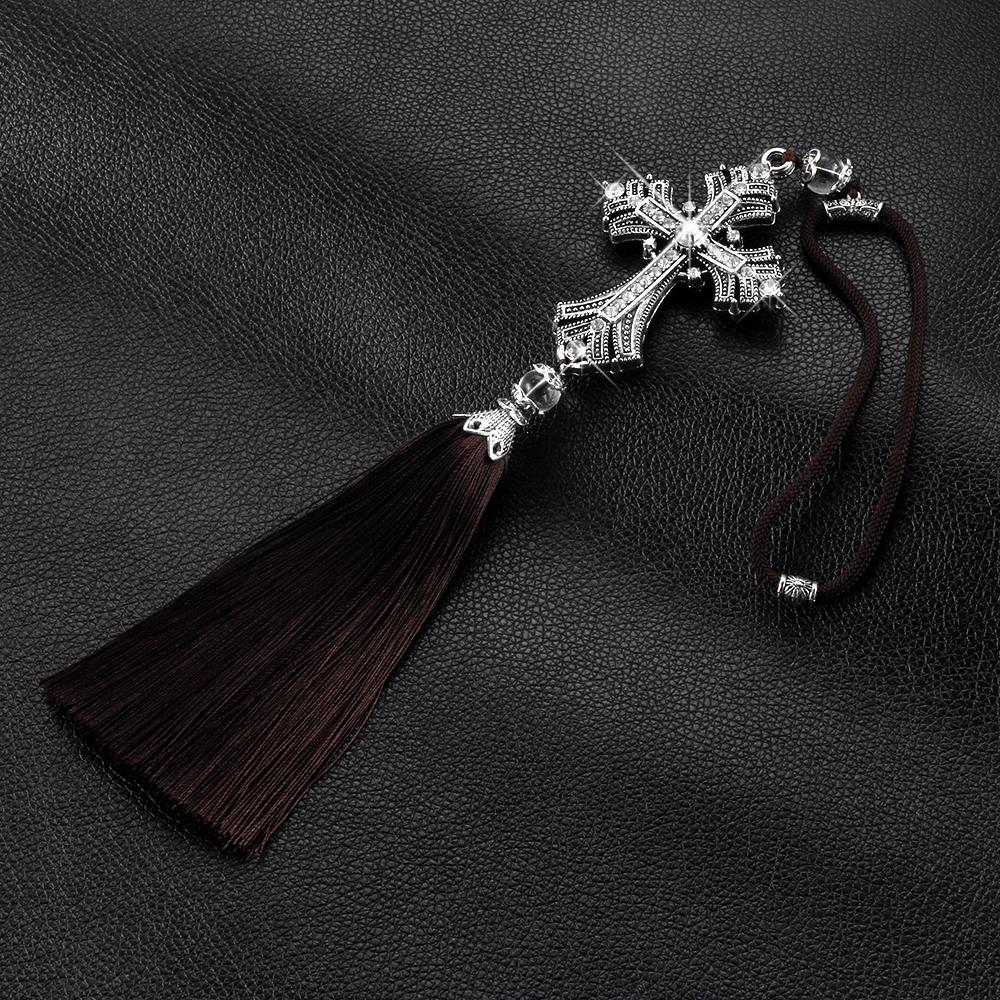 Metal And Crystal Diamond Cross Jesus Christian Car Rear View Mirror Car Pendant Hanging Car Accessories Automobiles Decoration