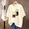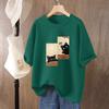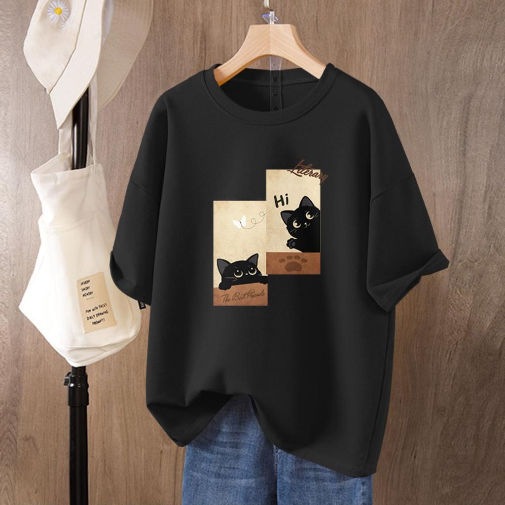 Pure Cotton Cat Printed Short-sleeved T-shirt for Women In Summer New Loose Large-size Half-sleeved Top