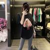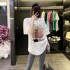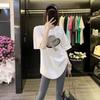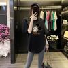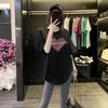 Butt Cover Top Loose Black Cotton Round Neck Short-sleeved T-shirt for Women In Summer Curved Hem Slit Medium Length