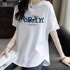 Pure Cotton Front Shoulder Short-sleeved T-shirt for Women's Summer New Korean Style Loose and Fashionable Printed Curved Hem Cover Top
