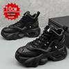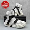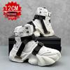 2024 Men's White High-Top Shoes with 12cm Invisible Height Increase, Air Cushion, Thick Sole, Fashionable Dad Sneakers