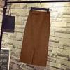 High-Waist Mercerized Cotton Knitted Skirt - Women's Autumn/Winter Slit Midi Skirt — buy online with free worldwide shipping!