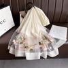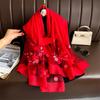 Elegant Silk Wool Embroidered Crabapple Flower Scarf - Double Layer, Thin, Large Shawl, Solid Color, All-Season Accessory.