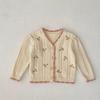 2025 Fall Versatile Baby Girl Embroidered Floral Cotton Knit Cardigan