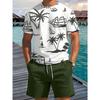 2025 Summer New Men's Short Sleeve Palm Tree Print Two Piece Drawstring Shorts Set Fashion Men's Vacation Beach Casual Suit