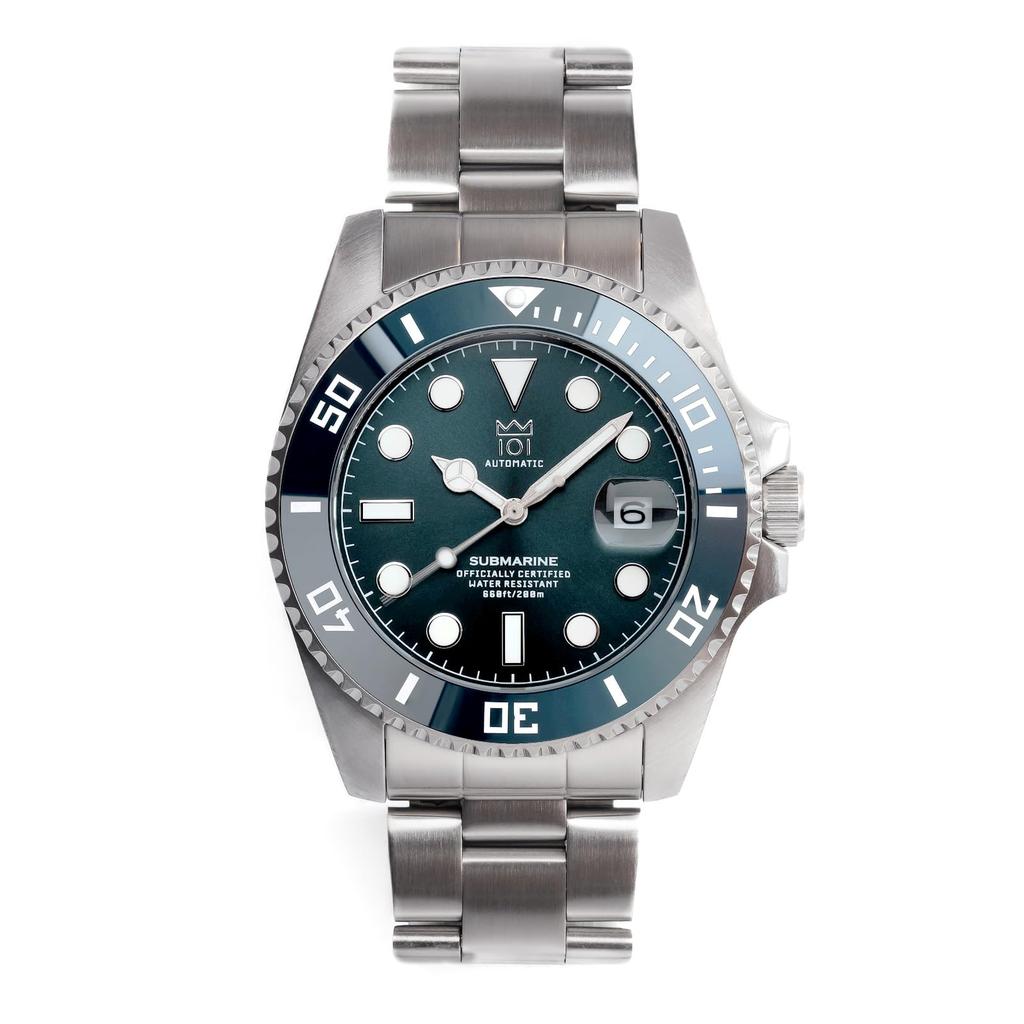 This is a HYAKUICHI mechanical diver's model equipped with a ceramic bezel. The glossy bezel does not have to worry about fading. You can also enjoy the contrast between the deeply engraved numbers and the glossy deep aqua. The azure sunray dial, inspired by the deep sea, is designed to be simple and classical, with specifications that fully convey the quality of the materials. Of course, we have adopted a see-through back so that you can fully enjoy the pleasure of being a mechanical watch. Functional markings are etched on the side of the case as a proof of reliability. In addition, the second hand, minute hand, and hour hand all have a hairline finish, which is an unprecedented specification, giving them a beautiful shine without glare. The brand logo is engraved on the crown, making it an exquisite piece with thorough attention to quality. The mechanical movement of the hands has a romance that is not found in the 1-second movement. When fully charged, it will run for about 41 hours (if you wear it, the pendulum movement will further extend the drive time). HYAKUICHI Diver's Watch Men's Watch 20 ATM Water Resistant Ceramic Bezel SUBMARINE ■Specifications Mechanical [Japanese Movement] Manual winding function (with hack function) Water resistant to 20 ATM