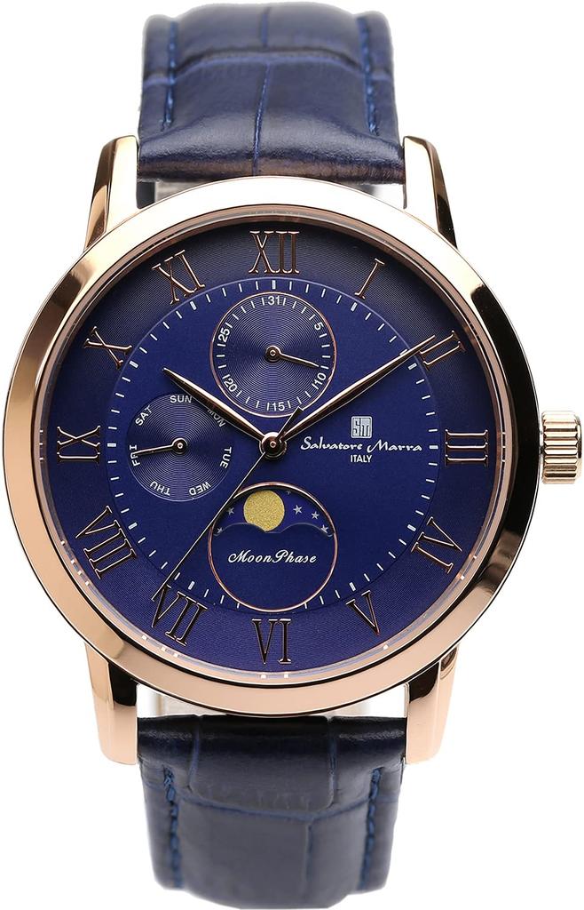 Watch Moon Phase Multi Calendar 5 ATM Water Resistant Business Formal Leather Belt Limited Model Pink Gold Blue [Salvatore Mara] Men's SM21106-PGBL — buy online with free worldwide shipping!