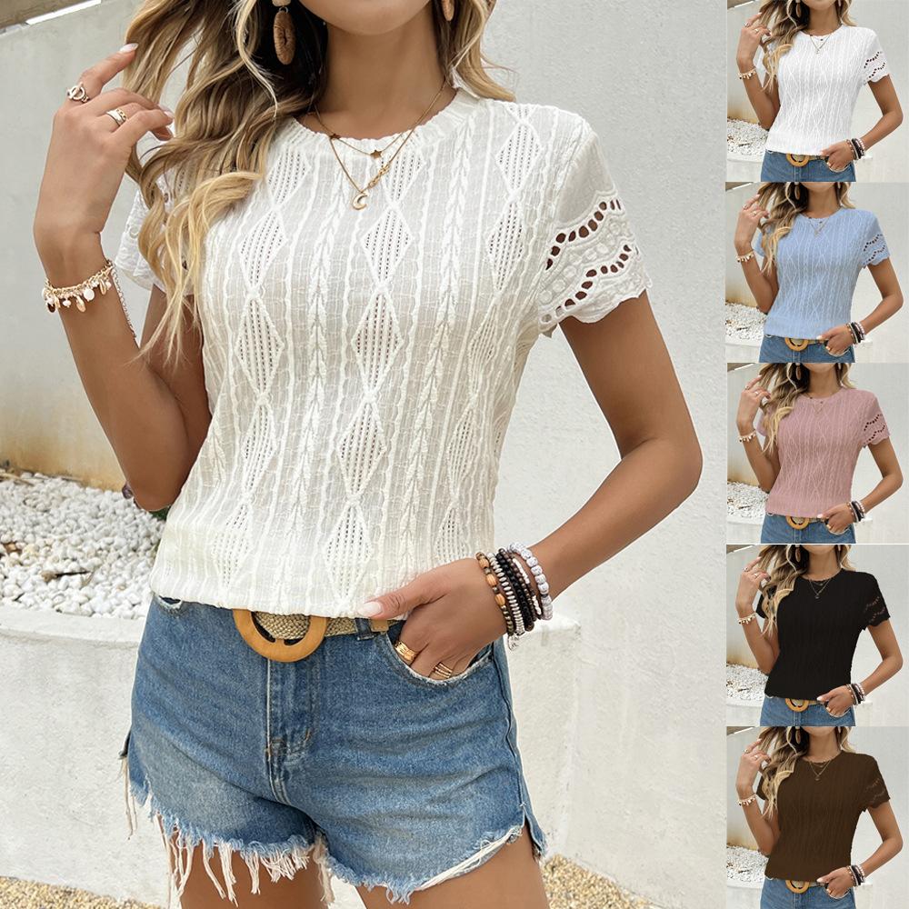 Spring and Summer New Round Neck Hollow Short Sleeve T-shirt Fashionable and Casual Women's T-shirt — buy online with free worldwide shipping!