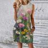 Women's Casual And Fashionable Round-neck Sleeveless Printing Mid Length Dress