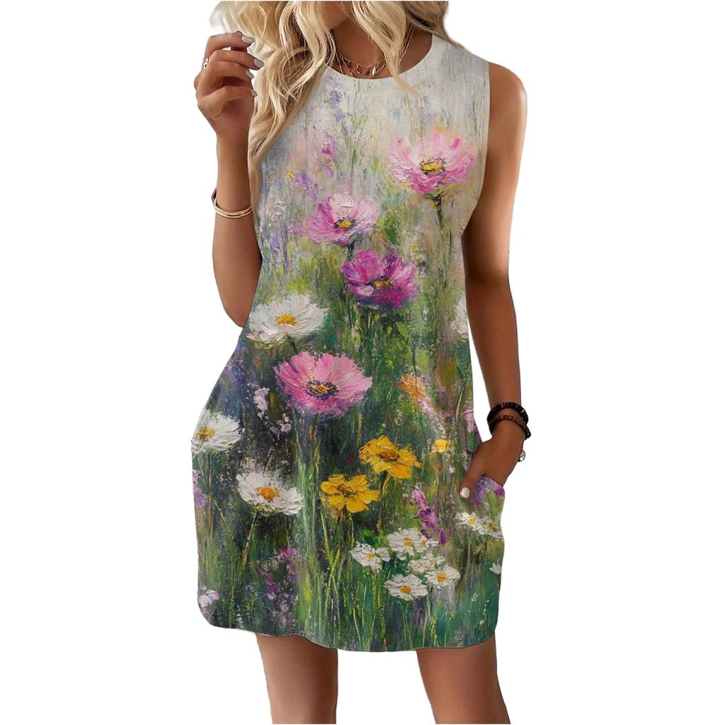 Women's Casual And Fashionable Round-neck Sleeveless Printing Mid Length Dress — buy products online with free worldwide shipping!
