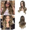 Long Wavy Wigs Ombre Gray To Watermelon Red Black Grey Purple Blue Brown Synthetic Hair For Black White Women Cosplay Party