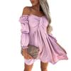 Introducing our elegant and stylish ladies dress, perfect for any occasion. This dress features puff sleeves and a one-shoulder design, adding a touch of sophistication to your look. The A-line skirt with a high waistline beautifully accentuates your figure and visually elongates your legs. Made from high-quality polyester fiber, this dress offers high elasticity and ensures a soft and comfortable feel. The loose waist and large skirt create a flowing and elegant silhouette, making it a must-have for any fashion-forward woman. Pair it with exquisite accessories like necklaces, bracelets, and earrings, along with woven bags or clutches for a complete look. Whether you're attending a cocktail party, office event, wedding, or simply going out on a date, this trendy high waist dress is the perfect choice. Elevate your style with this eye-catching dress that will make you stand out from the crowd.