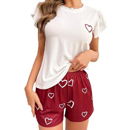 Casual Elegance: Embrace comfort in style with this two-piece pajama suit crafted from soft and breathable polyester fiber. The short-length-sleeved top and shorts offer a casual yet elegant look for lounging at home or relaxing after a long day.