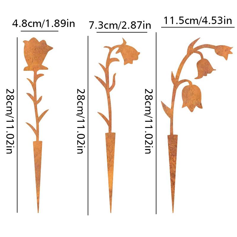 3pcs/set Metal Flower Stakes Rustic Rusty Bell Orchid For Yard Lawn Patio Iron Crafts Creative SL